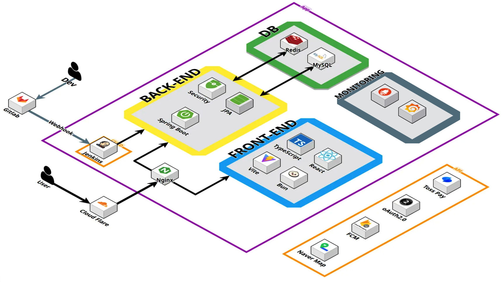 백엔드 관련 인프라 대부분을 내가 담당했다. 방학 때, 홈 클라우드를 구축한 경험이 아주 큰 도움이 됐다.