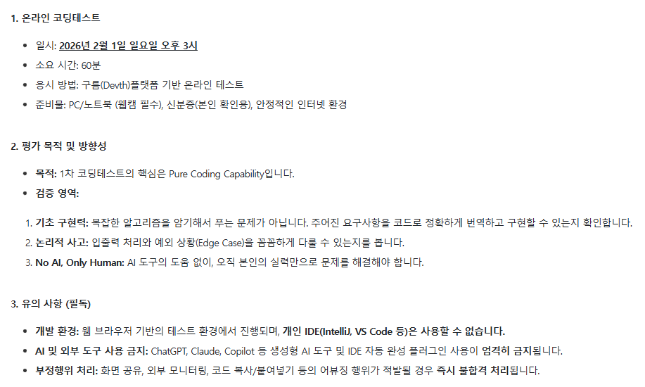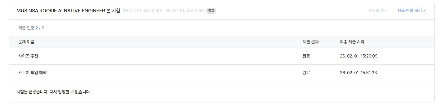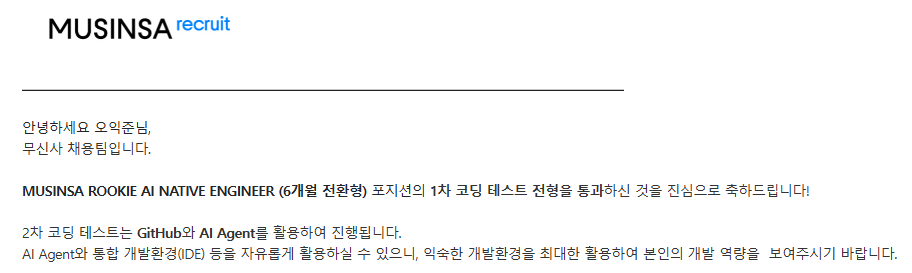 MUSINSA ROOKIE AI NATIVE ENGINEER (6개월 전환형)에 지원했고 1차 코테를 보게 되었다.