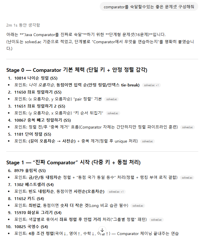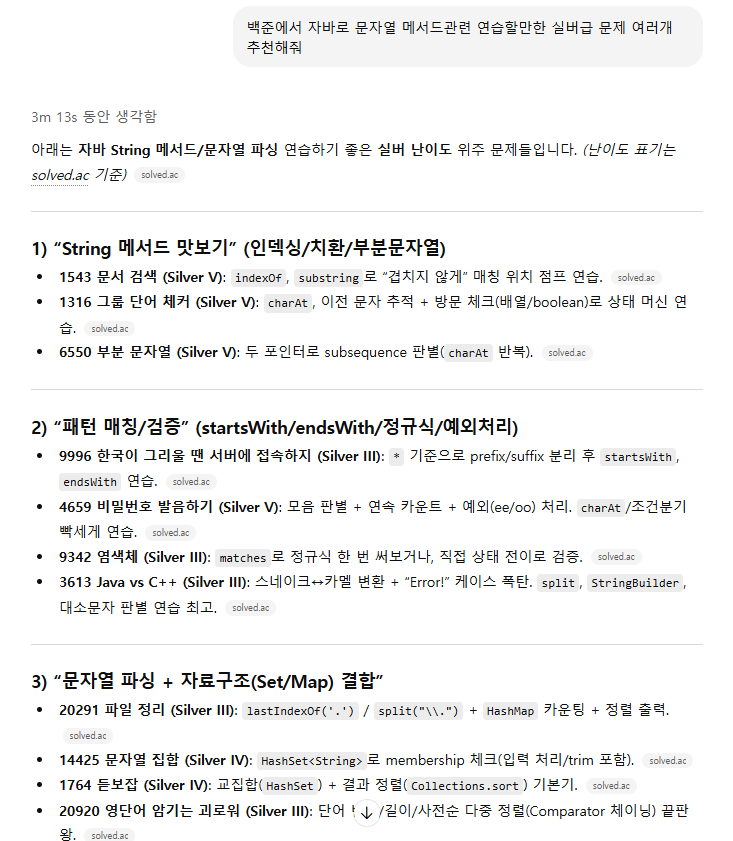문제를 풀어야 하는데, 우리는 AI Native 답게 GPT에게 문제 추천을 해달라고 했다.