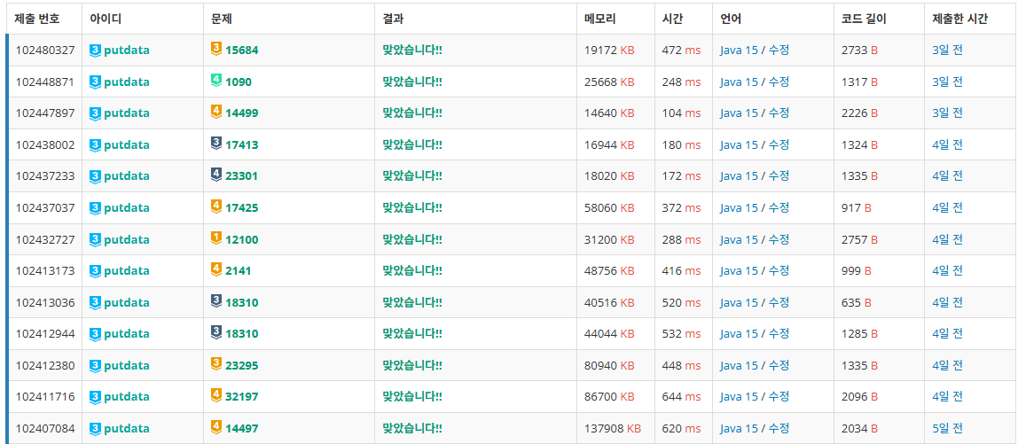 이렇게 문제를 열심히 풀었다. 나올지 안나올지는 모르겠지만 긴 호흡으로 구현하는 문제들도 여러개 풀었다.