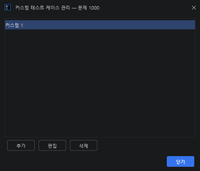 샘플 외에 직접 테스트 케이스를 추가하고 관리할 수 있습니다.