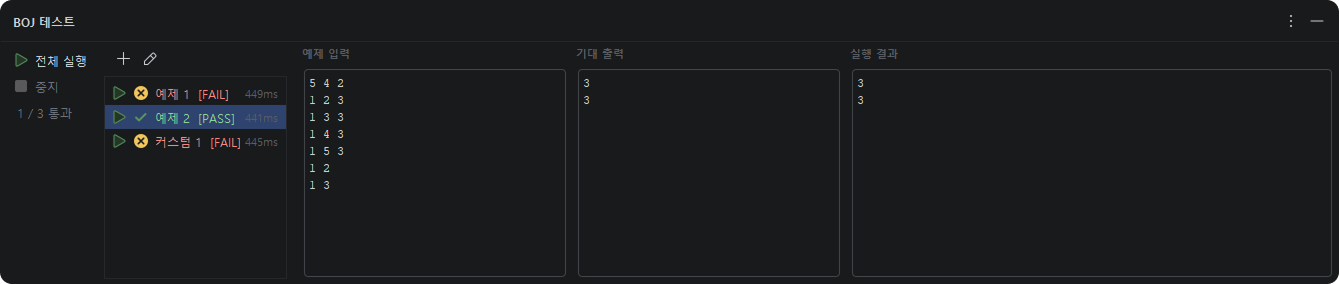 - Fail — 출력 불일치, 런타임 에러, 또는 시간 초과
